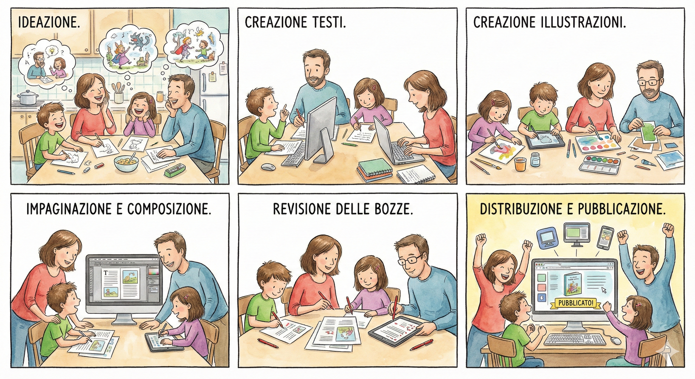 Avete mai pensato di trasformare i racconti della buonanotte o i disegni sparsi sul tavolo in un vero libro? Recentemente abbiamo avviato un laboratorio creativo familiare che si è concluso con una prima pubblicazione reale, e altri progetti sono ancora in corso.